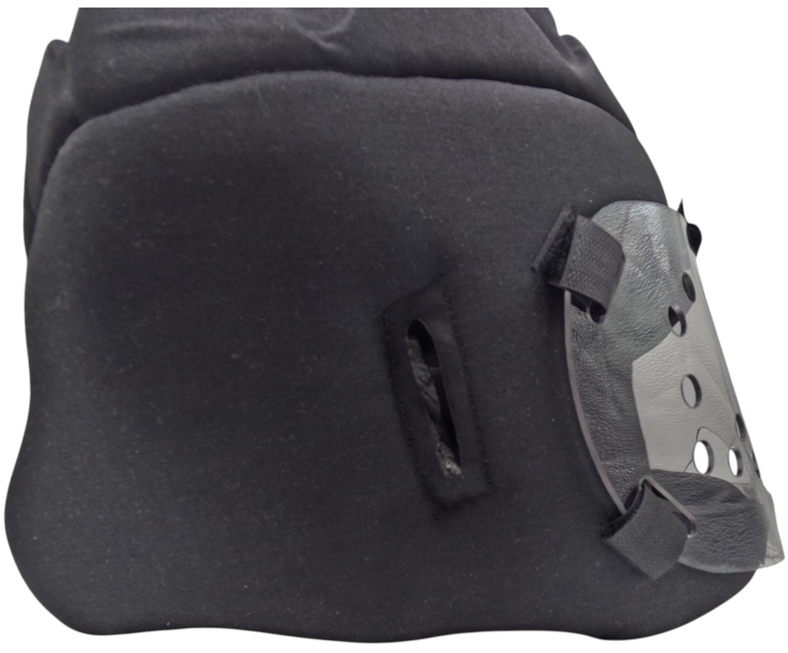 Despite its robust construction, the helmet remains lightweight, ensuring comfort during extended use. It features a durable design with high-impact padding, encased in indestructible DuPont™ black Cordura® nylon. This unique combination of materials helps dissipate shock across the helmet’s surface, effectively absorbing and dispersing force to protect critical areas of the head, including the ears, chin, forehead, and skull.